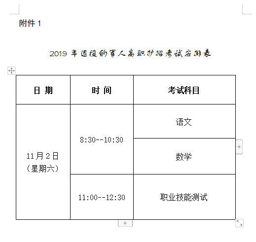 (一)考试安排。考试时间安排在11月2日(详见附件1),文化素质考试和职业技能测试由有关高职院校(详见附件2)负责组织实施。
