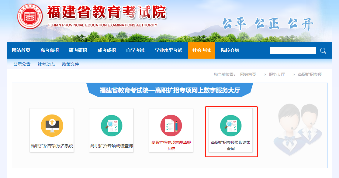 福建省2019年高职扩招专项常规志愿录取结果已公布,考生可登录省教育考试院网站(www.eeafj.cn)“数字服务大厅----高职扩招专项----高职扩招专项录取结果查询”栏目进行查询。