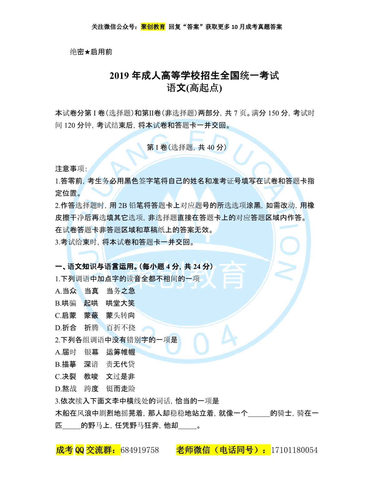 很多的成考考生朋友来问我,有没有10月成人高考的答案,现在就将一些成考考生回忆的真题答案总结一下公布给有需要的朋友,可以对一下相关的答案。在这边提醒一下各位考生朋友,成考考试成绩在11月中旬左右应该会公布,届时以考试院通知为准,在这边我们提供的网友回忆版真题答案,不一定就是最终的答案,所以,即使和自己的答案有所差别,也不用过于紧张。
