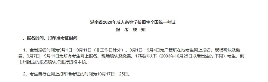 1、全省报名时间为9月1日-9月11日(非工作日除外)。9月1日-9月4日为户籍所在地考生网上报名、现场确认及缴费,9月7日-9月11日为所有考生网上报名、现场确认及缴费。17周岁以下(2003年10月25日以后出生的,下同)考生,到市州指定的报名确认点进行资格审核。