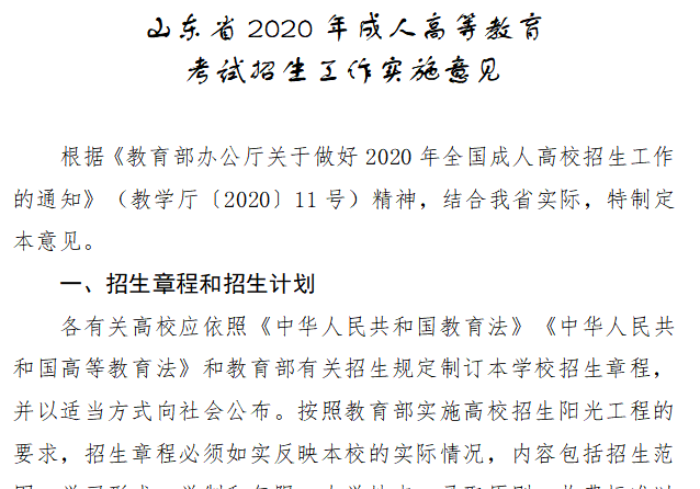 更多详情点击右侧文件进行了解哦~ 山东省2020年成人高等教育考试招生工作实施意见