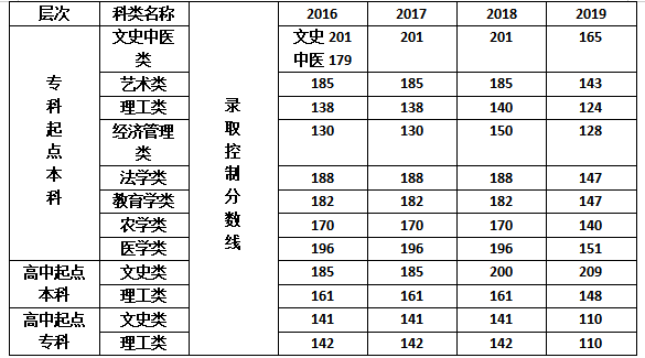 小聚整理了一份,2016年-2020年福建省的成考各层次的录取分数线。
