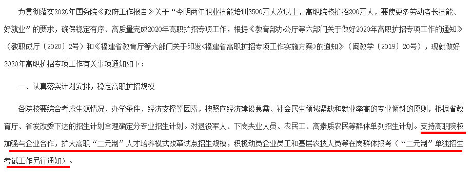 近日,福建省教育厅发布了关于《2020年高职扩招专项工作》的通知。