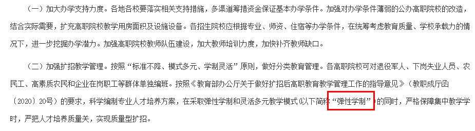 有同学对文件中的“弹性学制”表示不太理解?简单来说,“弹性学制”是指学生可以通过线上和线下相结合的方式进行学习,也就是学生可以选择不住校,利用自己课余时间进行线上学习。