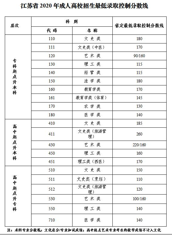 按近几年的录取线来看,江苏每个层次每个类别分数线大部分集中在150左右。同样平均每个科目考40-60分就能过最低录取控制线。
