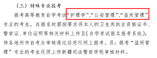 报考特殊专业考生,例如护理学、公安管理、监所管理专业,需提交相关材料,审核通过后即可报名。