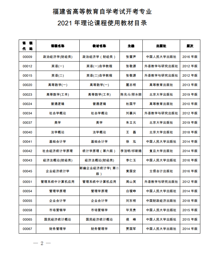 2021 年理论课程考试使用教材目录点击文件下载保存>>文档。