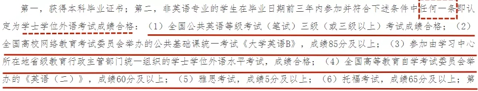 非英语专业的学生在毕业日期前三年内参加并符合下述条件中任何一条即认定为学士学位外语考试成绩合格: