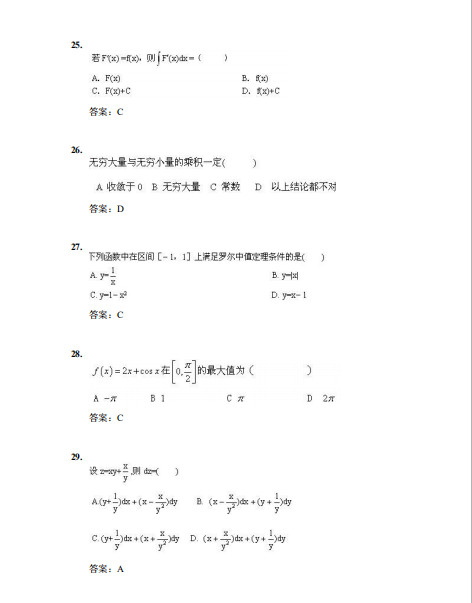厦门大学由著名爰国华侨领袖陈嘉庚先生于1921年创办,是中国近代教育史上第一所华侨创办的大学,也是国家教育部直属重点综台性大学,2017年入选国家公布的A类"世界一流大学建设高校名单。2001年1月原门大学被教育部批准为现代远程教育试点高校。厦门大学继续教育学院是厦门大学组织实施在职继续教育的专门办学机构,是我校开展网络学历教育、高端培训的教学单位。我校网络教育采用基于国际互朕网这一现代技术载体组织教学和管理,采用网上课件教学、课堂视频辅导等方式,并配有网上作业、网上答疑和网上讨论,学习方式简便,只需宽带接入,就可不受空间和时间限制,自由安排学习。达到单独成班条件的企事业单位的集团班,还可享受一定比例的学费优惠和有针对性的教学管理等服务。厦门大学网络教育2019年秋季面向在职从业人员招收业余专科起点本科的学生。本篇为聚创教育厦门大学网络教育专起本大学数学(模拟题三)