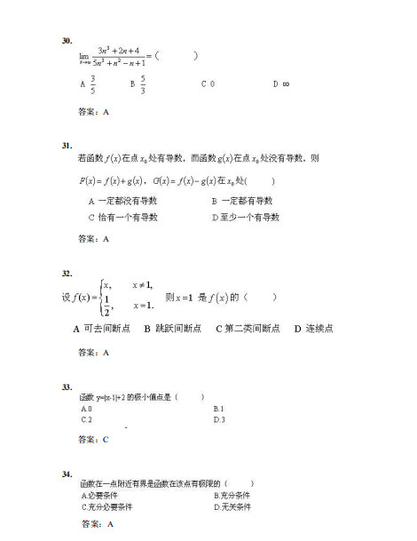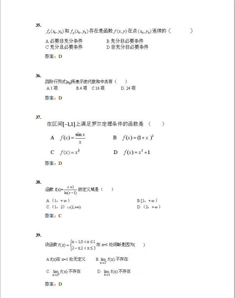 厦门大学由著名爰国华侨领袖陈嘉庚先生于1921年创办,是中国近代教育史上第一所华侨创办的大学,也是国家教育部直属重点综台性大学,2017年入选国家公布的A类"世界一流大学建设高校名单。2001年1月原门大学被教育部批准为现代远程教育试点高校。厦门大学继续教育学院是厦门大学组织实施在职继续教育的专门办学机构,是我校开展网络学历教育、高端培训的教学单位。我校网络教育采用基于国际互朕网这一现代技术载体组织教学和管理,采用网上课件教学、课堂视频辅导等方式,并配有网上作业、网上答疑和网上讨论,学习方式简便,只需宽带接入,就可不受空间和时间限制,自由安排学习。达到单独成班条件的企事业单位的集团班,还可享受一定比例的学费优惠和有针对性的教学管理等服务。厦门大学网络教育2019年秋季面向在职从业人员招收业余专科起点本科的学生。本篇为聚创教育厦门大学网络教育专起本大学数学(模拟题四)