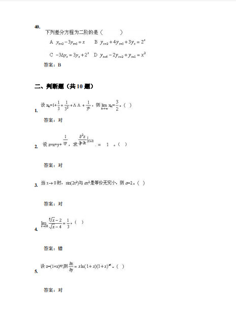 厦门大学由著名爰国华侨领袖陈嘉庚先生于1921年创办,是中国近代教育史上第一所华侨创办的大学,也是国家教育部直属重点综台性大学,2017年入选国家公布的A类"世界一流大学建设高校名单。2001年1月原门大学被教育部批准为现代远程教育试点高校。厦门大学继续教育学院是厦门大学组织实施在职继续教育的专门办学机构,是我校开展网络学历教育、高端培训的教学单位。我校网络教育采用基于国际互朕网这一现代技术载体组织教学和管理,采用网上课件教学、课堂视频辅导等方式,并配有网上作业、网上答疑和网上讨论,学习方式简便,只需宽带接入,就可不受空间和时间限制,自由安排学习。达到单独成班条件的企事业单位的集团班,还可享受一定比例的学费优惠和有针对性的教学管理等服务。厦门大学网络教育2019年秋季面向在职从业人员招收业余专科起点本科的学生。本篇为聚创教育厦门大学网络教育专起本大学数学(模拟题五)